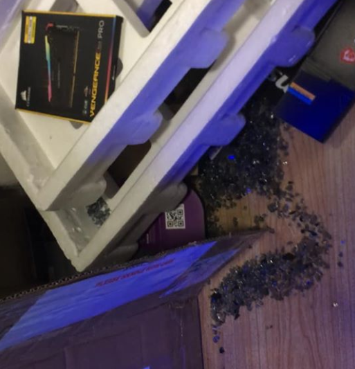 Yeah, so the tempered glass panel on my case is completely shattered due to the courier’s mishandling of my package. Not only that, but a part of the case—right beside the rear exhaust fan, to be exact—is badly dented.