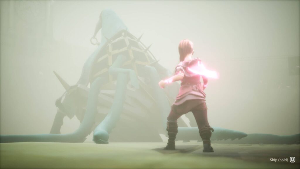 The game starts off within the dream world, where we are introduced to the main character, Cassidy. There, she stares at an ominously glowing gravestone until a monster pops out and reaches out to her. Upon waking up, we get a ten-year time skip and a short cutscene showing her moving out of home and into the city of Redhaven, where most of the “real world” content takes place.