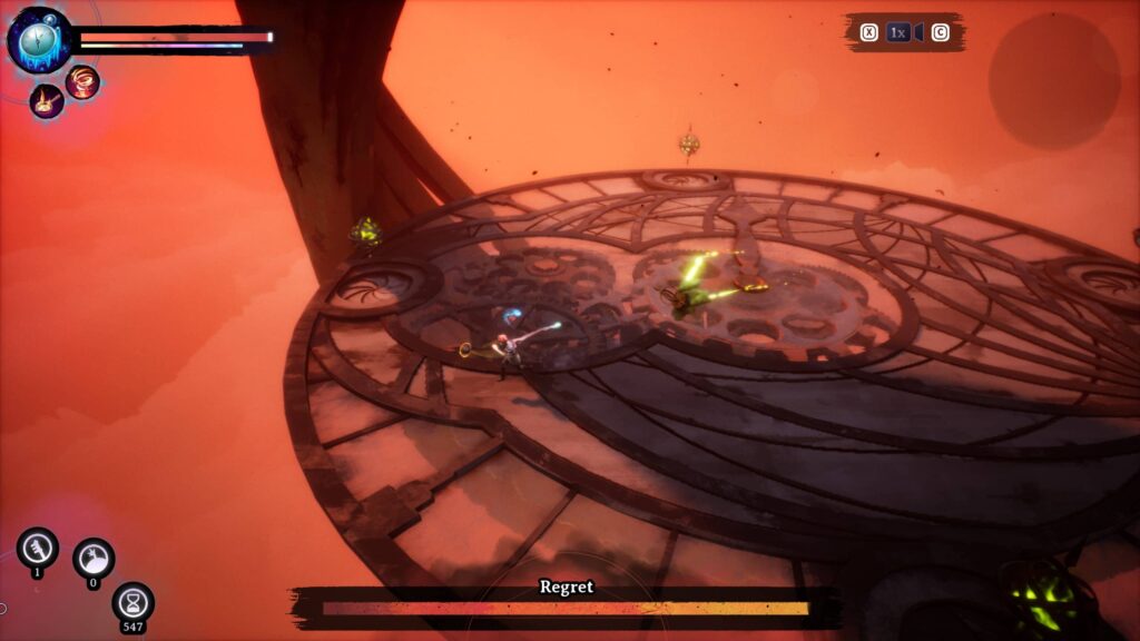 The game also features a block and parry system, though I’ve found that dodging is usually better anyway. On that note, there are multiple types of shoes that you can find and equip, which drastically changes how you dodge. Although you can opt to simply roll or weave, you can also choose to zip around the battlefield and leave behind a shockwave of electricity at the end of your dodge.